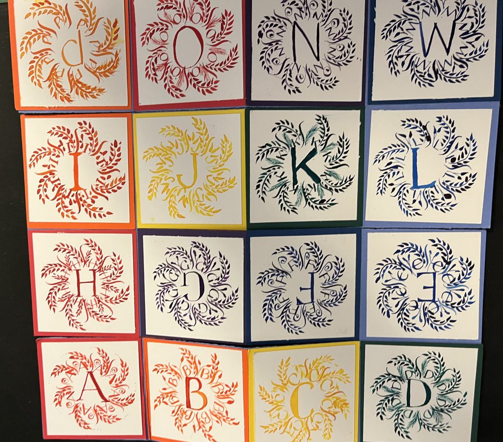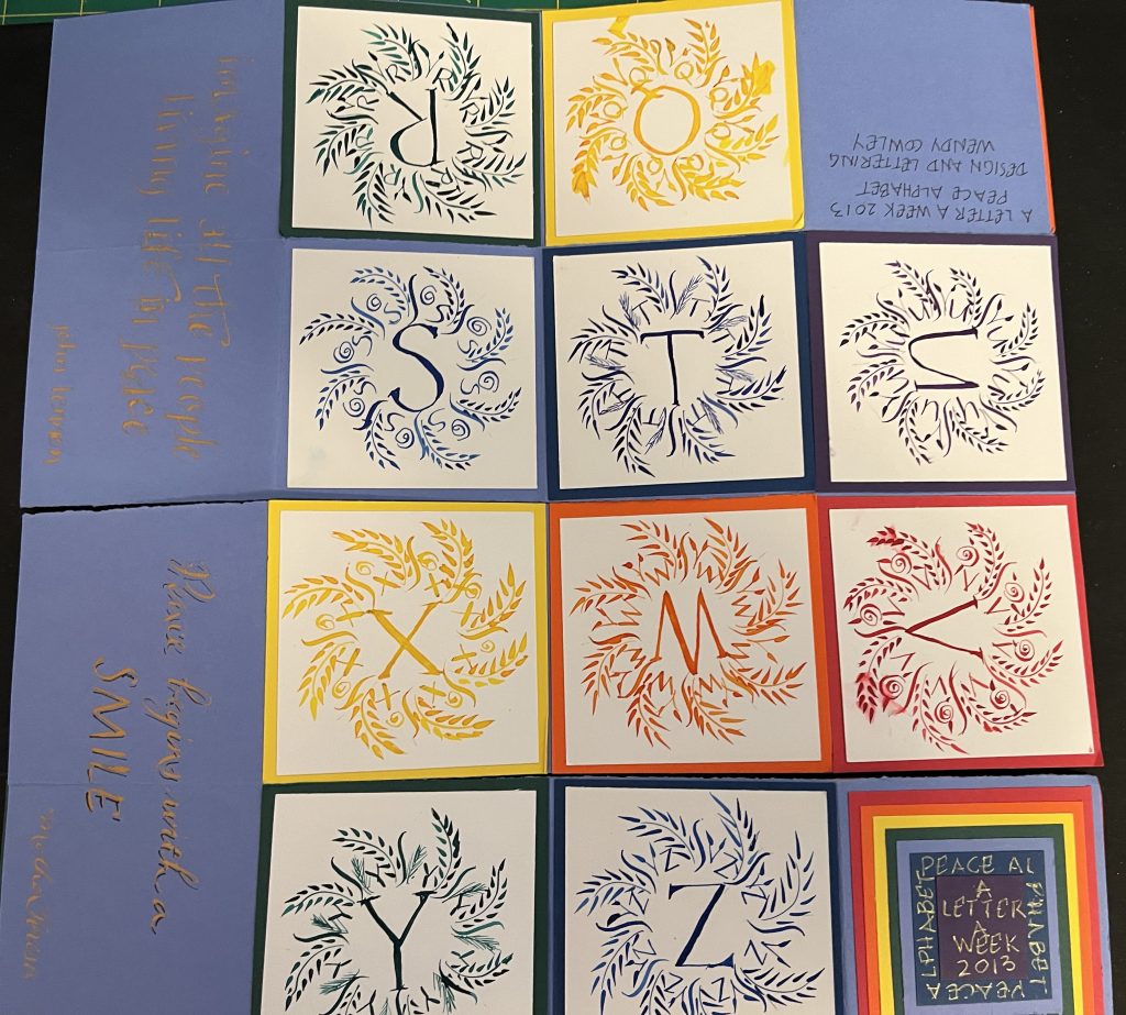 “Folded and meandering books are simple books made out of a single sheet of paper. I am not a bookbinder, but I can make these simple books successfully. I use them for thumbnails, cards and alphabet books. I even have one that is a record of a lettering class. We will look at several ways of folding a single sheet of paper into books with 8 to 32 pages using simple folds and cutting on selected folds. Folding directions are included in this notice. Please print them and bring them with you. All paper will be provided. Please bring a bone folder if you have one and scissors and/or a cutting mat, x-acto knife, and metal ruler. (I will just be using scissors,) I hope we will be able to complete 4 books at the meeting. 3 will be with 8 sections and one with 16.” – Wendy